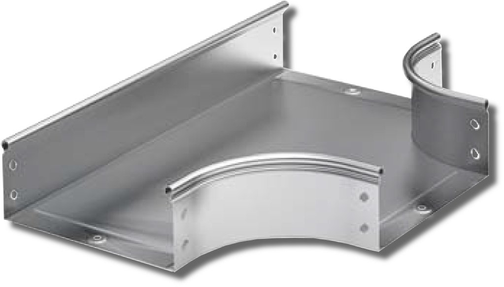 Ответвитель T-образный горизонтальный 100х50 мм в комплекте с крепежными элементами и соединительными пластинами.