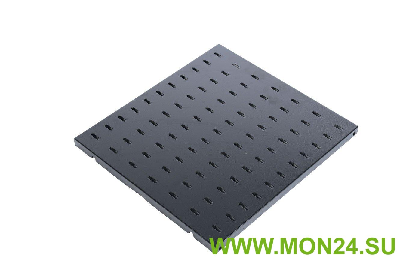 Полка перфорированная, размеры (ВхШхГ) 25х496х390 мм, нагрузка до 45 кг, цвет черный RAL 9005