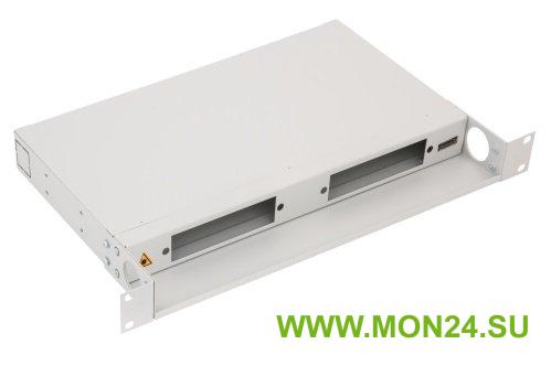 Оптический кросс NIKOMAX 19″, 1U, до 24 FC/ST или 48 SC/LC портов, неукомплектованный, с полкой, стальной, серый