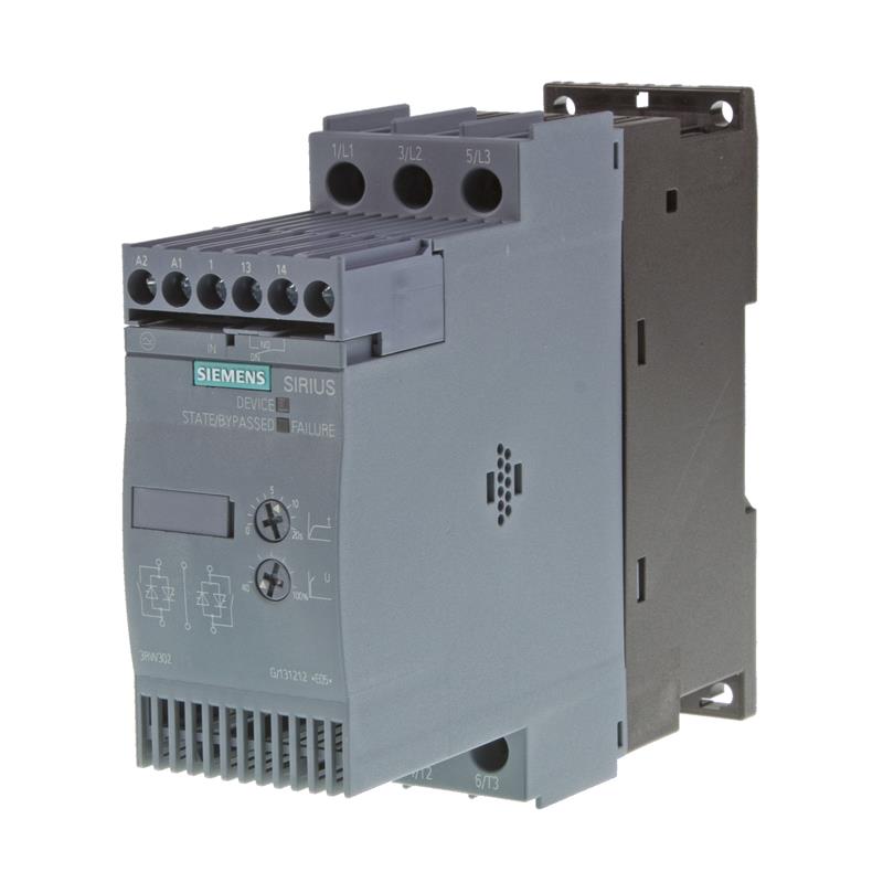 Оборудование мягкого пуска Sirius 3RW30 специально разработаны для трех-фазных асинхронных электродвигателей малой и средней мощности (1.1 — 55 кВт).Устройства плавного пуска Siemens 3RW30 широко используются в холодильном оборудовании, кондиционерах, системах управления насосами, ленточными конвейерами и многих других применениях.Данные устройства осуществляют плавный запуск электродвигателя. Есть возможность регулировки времени, в течение которого происходит плавный запуск. Также поддается регулировке и уровень пускового момента, развиваемого на валу электродвигателя.Благодаря этим действиям удается значительно снизить пусковые токи и избыточный пусковой момент во время запуска электродвигателя, тем самым, обеспечивая надежную защиту электродвигателя, механизмов технологического процесса, а также сети электропитания.Двухфазное управление на протяжении всего разгона позволяет поддерживать ток во всех трёх фазах на уровне минимальных значений.Благодаря непрерывному действию напряжения здесь отсутствуют пиковые токи и моменты, в отличие от пускателей типа «звезда–треугольник».Применение устройств плавного пуска Siemens 3RW30 снижает нагрузку на сеть электропитания, продлевая таким образом срок службы.ПреимуществаКомпактностьРациональное использование монтажного пространства позволяет установить большее количество изделий;Простота настройкиЭргономично расположенные потенциометры на лицевой панели обеспечивают удобство настройки режимов работы устройства;Наглядная индикацияСветодиодная индикация на передней панели обеспечивает хорошую информативность режимов работы и аварийных ситуаций;Простота монтажаКрепление устройства плавного пуска Siemens серии 3RW30 осуществляется на стандартную DIN-рейку 35-мм.