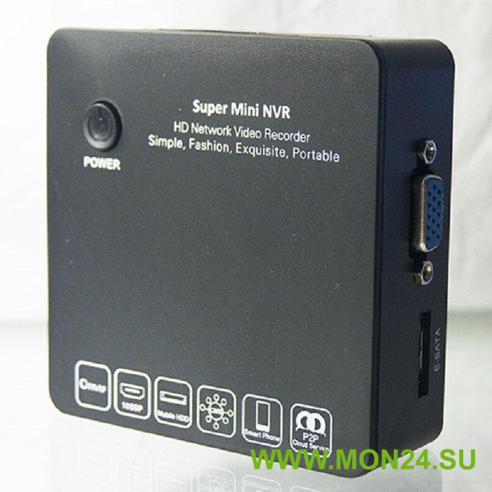 IP видеорегистратор 4 канальный; 1920х1080 — 100 к/с (воспроизведение 4 каналов 720р); ОС Embedded Linux; H.264; ONVIF; E-SATA HDD; P2P Cloud; VGA, HDMI; 88x88x32 мм. Поддержка iPhone, Android, Windows; Без возможности установки жесткого диска внутри.